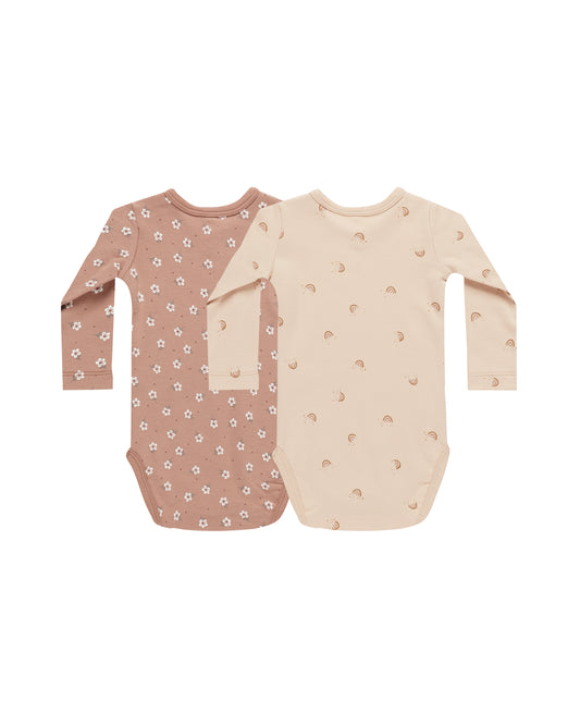 Quincy Mae Jersey Bodysuit 2 Pack Rose Ditsy Rainbows