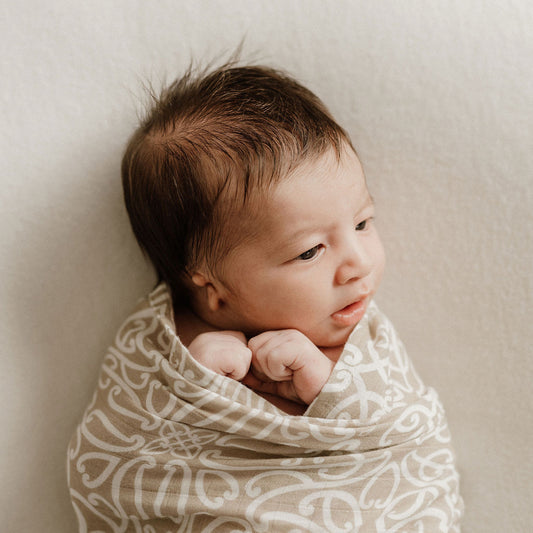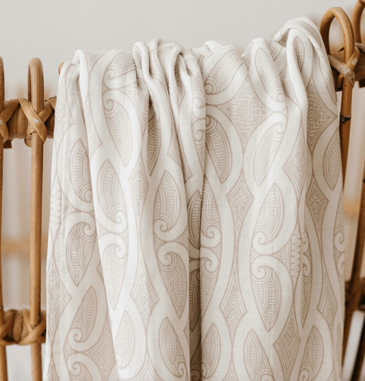 Bo & Ko Koru Māori Pēpi Wrap Beige