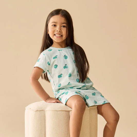 Wilson & Frenchy Organic Crinkle Short Sleeved Pyjamas Apple Papple