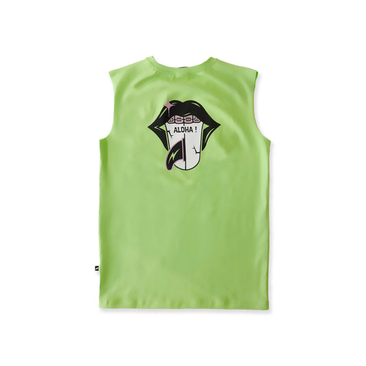 Hello Stranger Aloha Tongue Muscle Tee Lime