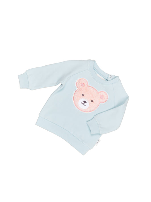 Huxbaby Furry Heart Bear Sweatshirt Blue Misty