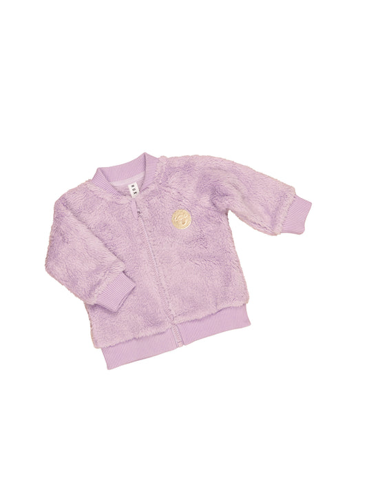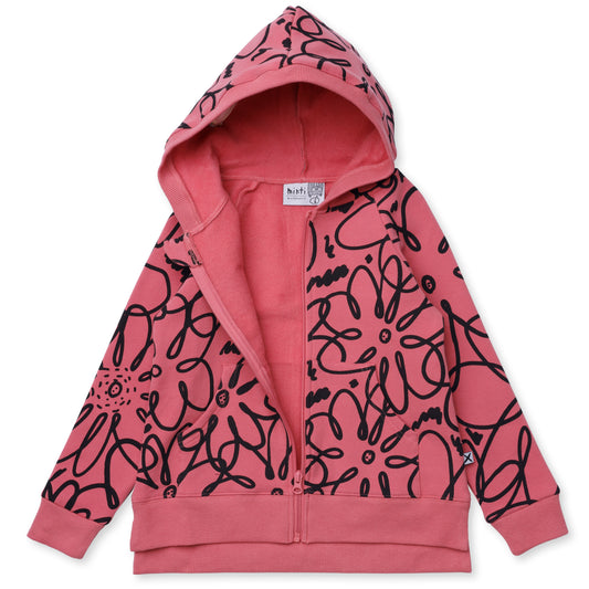 Minti Flower Outline Furry Zip Up Rose