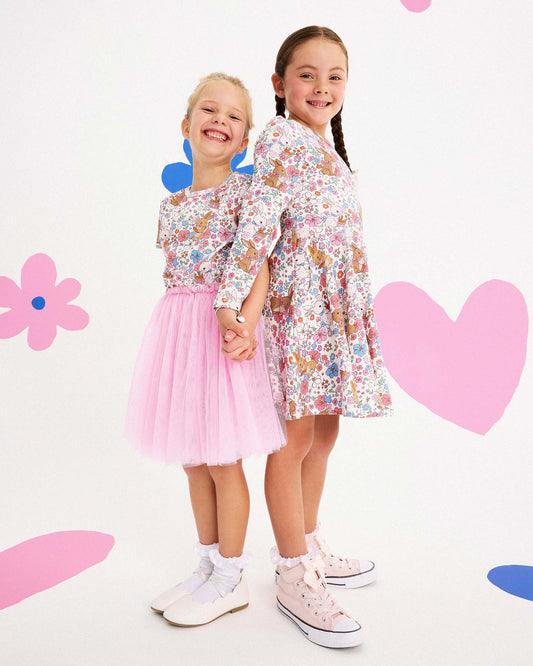 Rock Your Kid Ditsy Bunny Long Sleeve Circus Dress