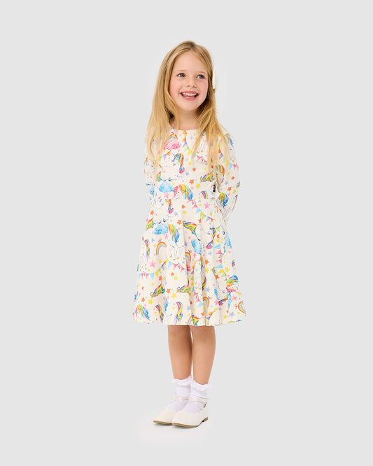 Rock Your Kid Unicorn Flags Long Sleeve Waisted Dress