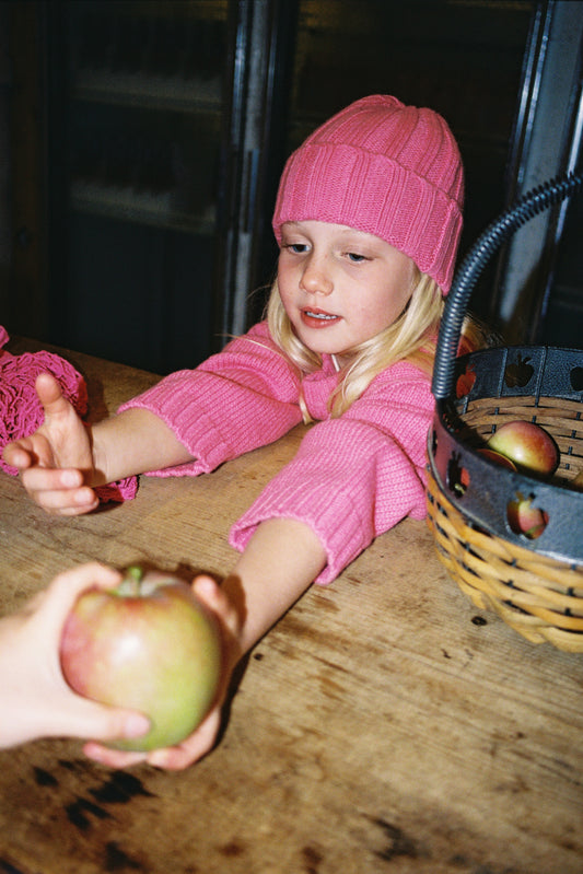 Grown Merino Blend Rib Knit Beanie Raspberry