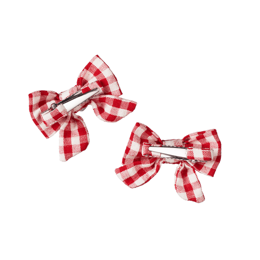 Nature Baby Small Bow Hair Clips Red Check 2pack