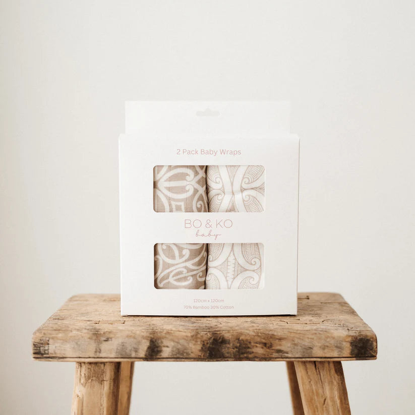 Bo & Ko 2 Pack Wrap Set Koru Mocha & Te Pātiki Mocha