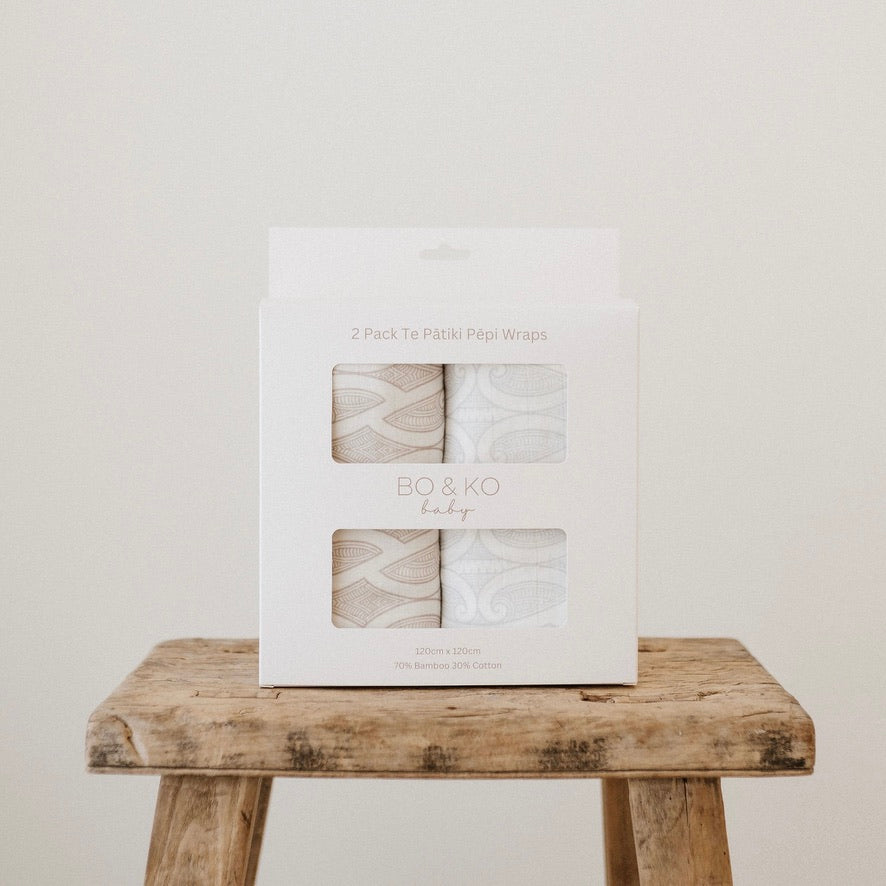 Bo & Ko 2 Pack Wrap Set Te Pātiki Mocha & Te Pātiki Grey