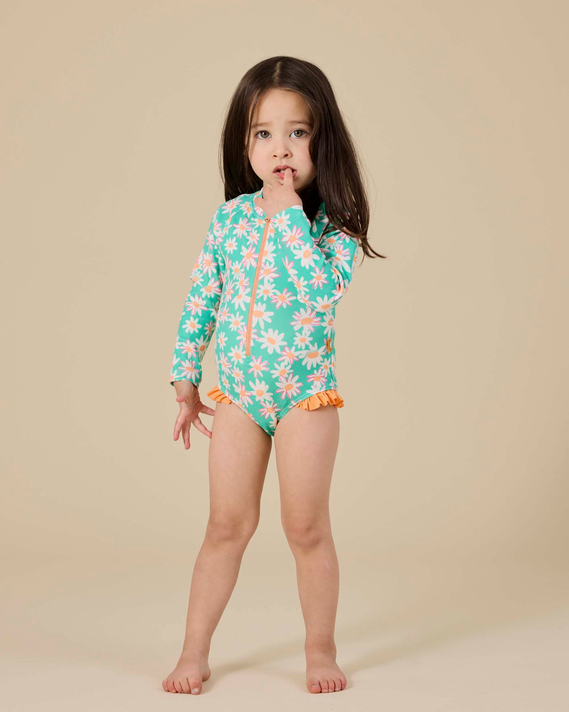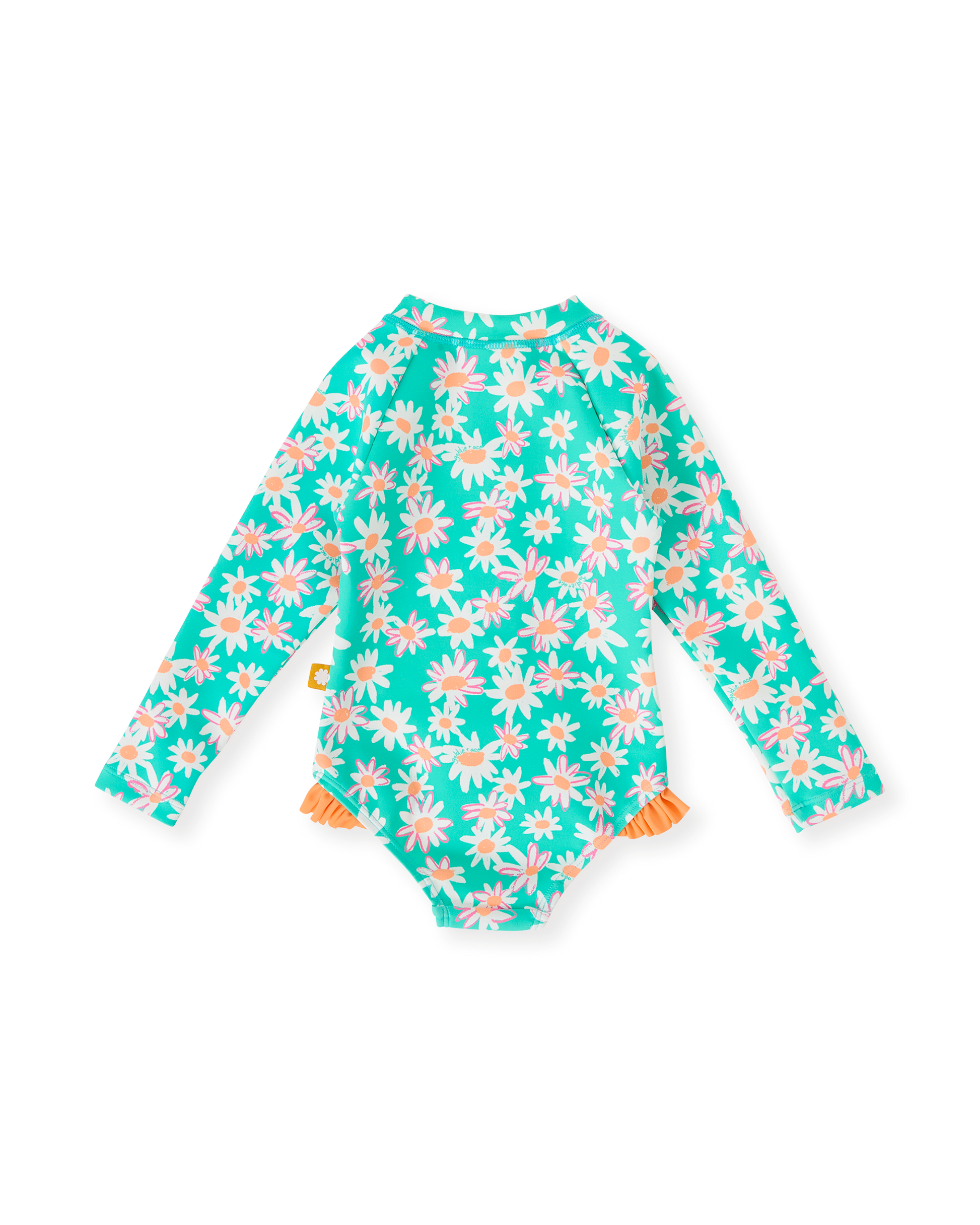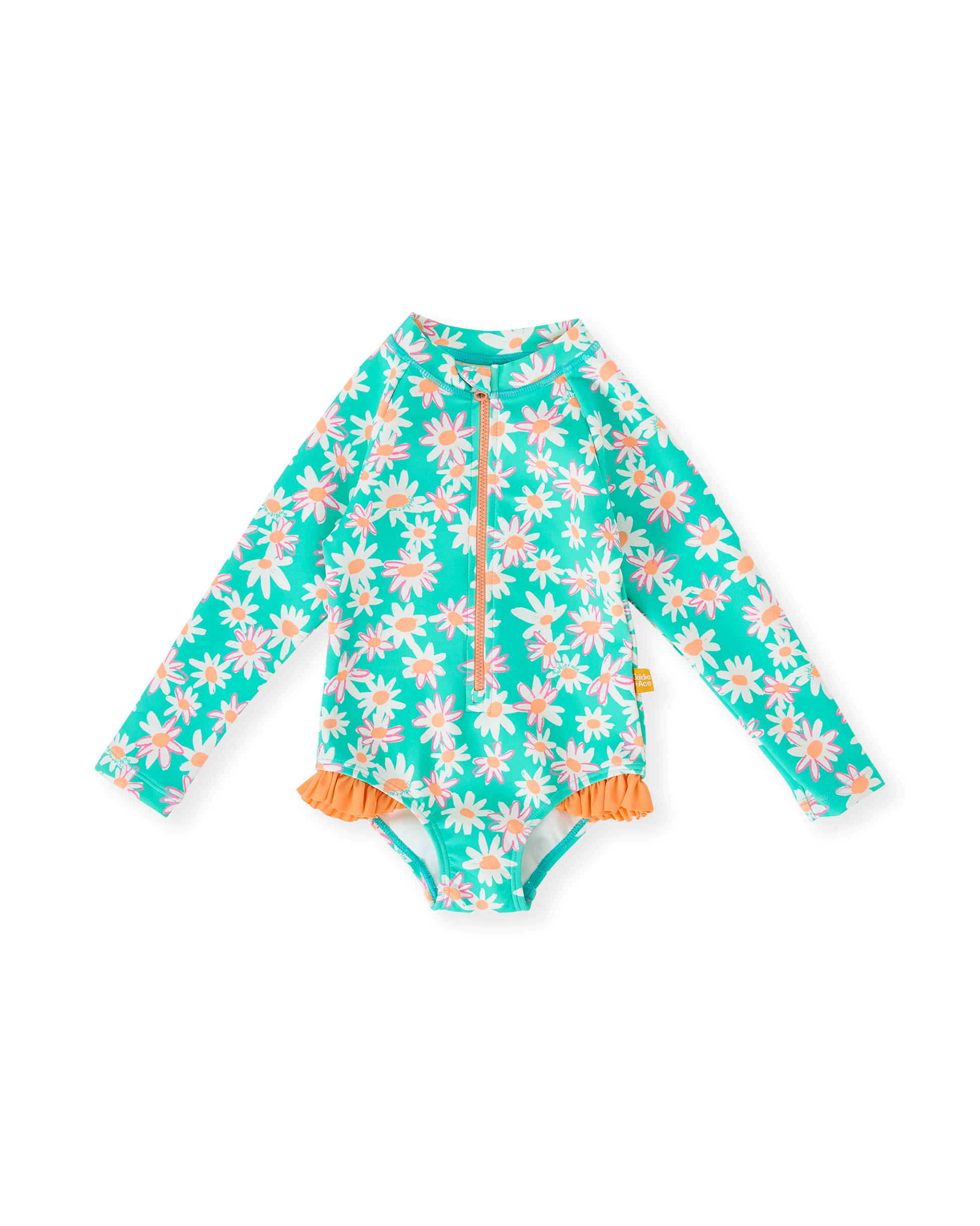 Goldie + Ace Daisy Patch Long Sleeve Frill Swimsuit