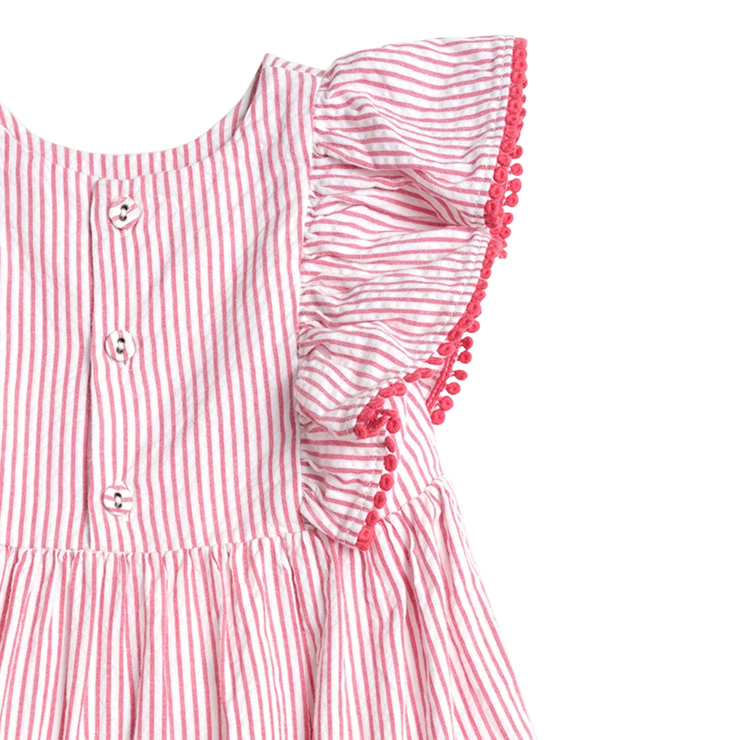 Event dressing, made easy. Made from 100% cotton, this dress features oversized frill sleeves and a full, tiered skirt just waiting to be twirled. Light, breezy and in our super sweet cherry stripe, this piece features detailed cherry embroideries along the front hemline.