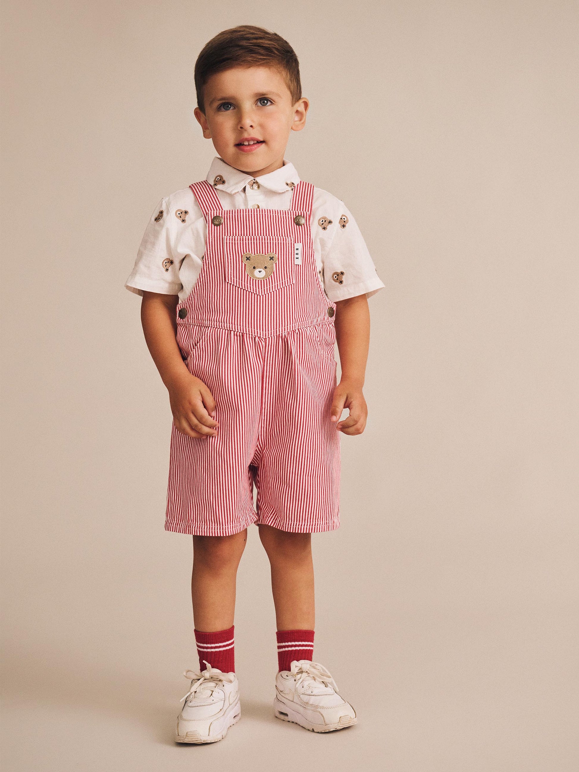Huxbaby Chill Red Stripe Short Overalls