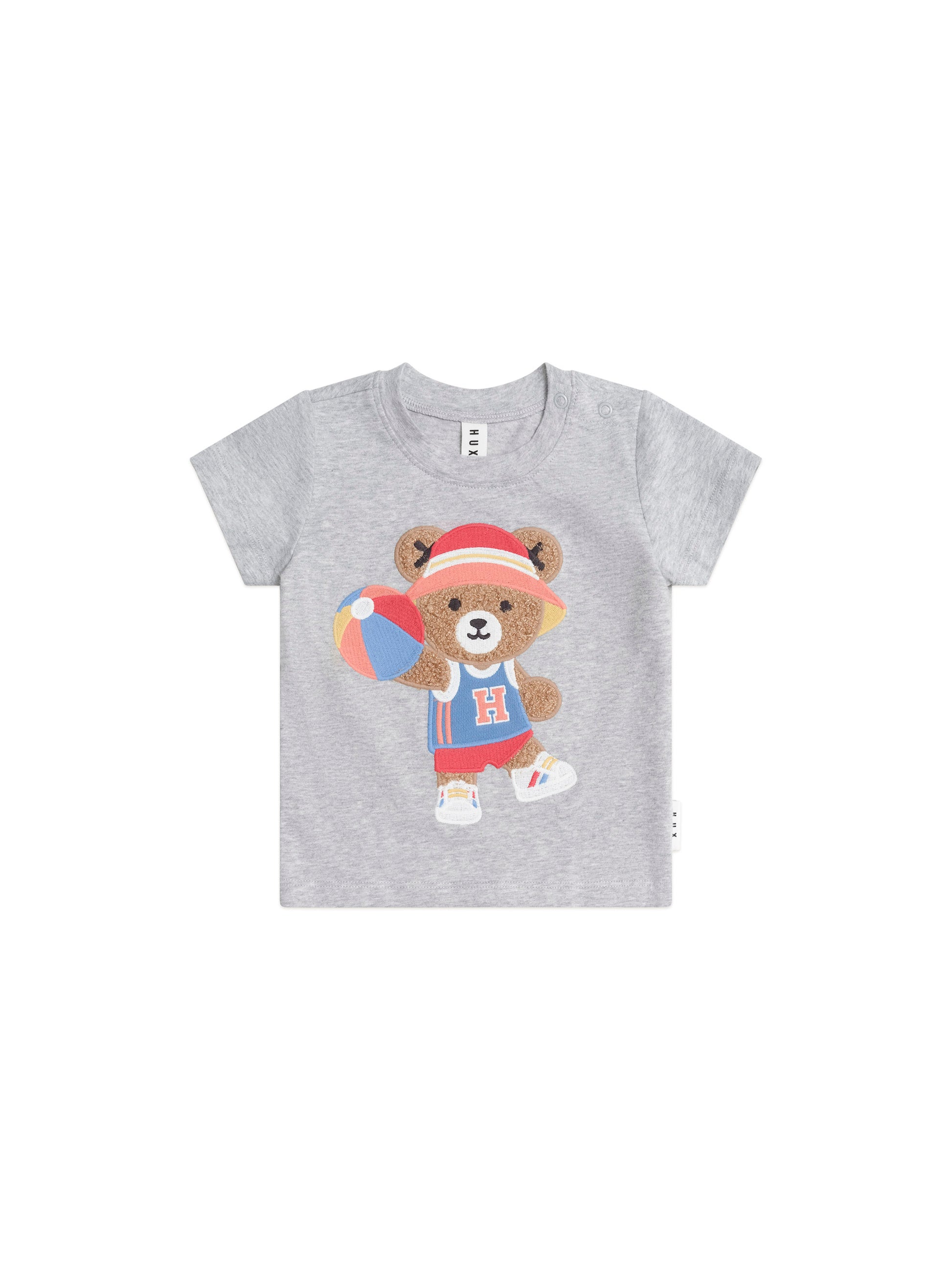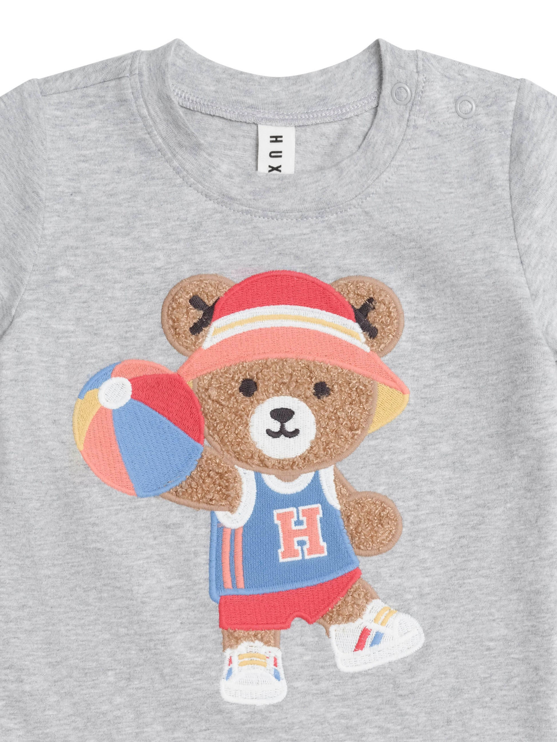 The perfect everyday tee, but with a fun and sporty twist. This round neck t-shirt is made from buttery-soft organic cotton in a classic grey Marle and features a sporty Huxbear embroidered on the tummy. Baby sizes feature stainless steel shoulder snaps for quick changes. Every wardrobe needs at least one.