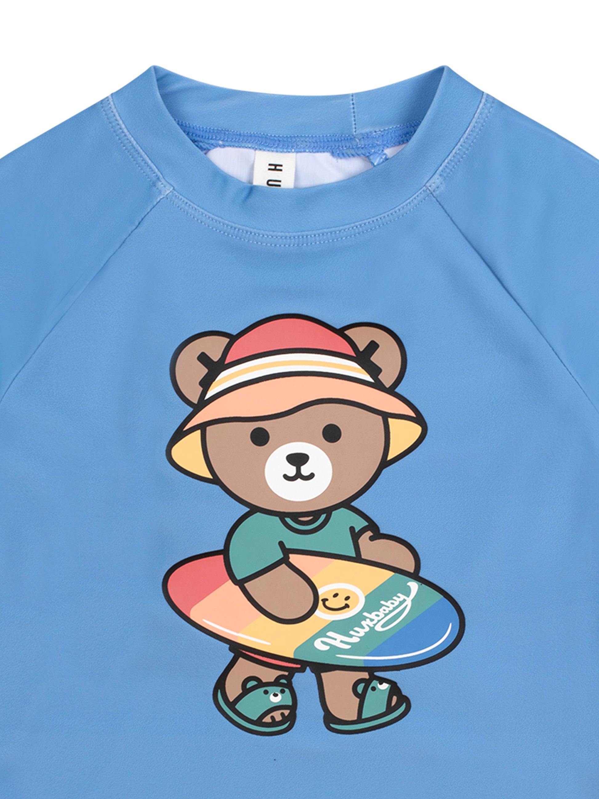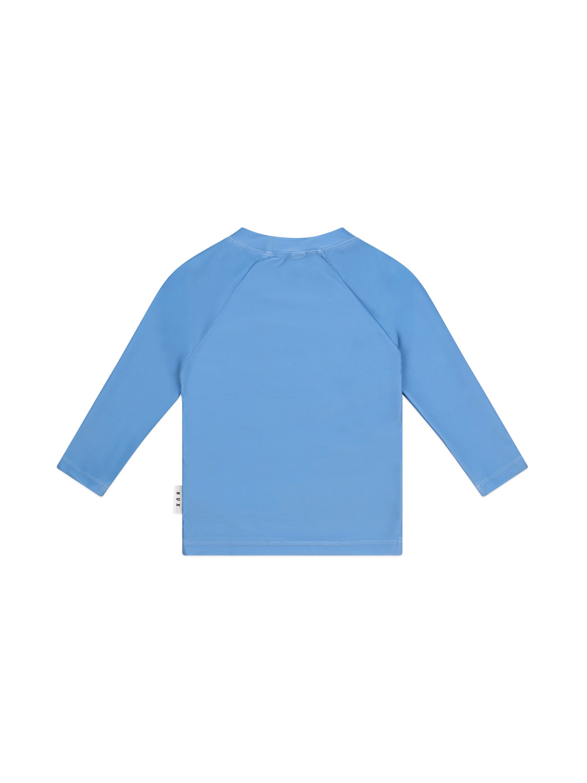 Surf, splash, Huxbear, repeat. This marine blue coloured rashguard is rated UPF 50+, which is the highest achievable sun protective rating for fabrics. Consciously crafted with recycled polyester, it features a high neckline and long sleeves for added protection.