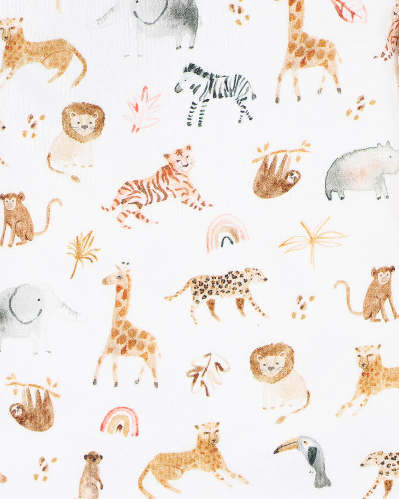 A perfect piece for warm-weather play, our Organic Cotton Button front bodysuit brings a little adventure to everyday dressing. Made from soft and breathable 100% Organic Cotton, it features our much-loved hand-illustrated safari animal print in gentle earthy tones. Press studs at the crotch and functional buttons at the front make changes quick and fuss-free.