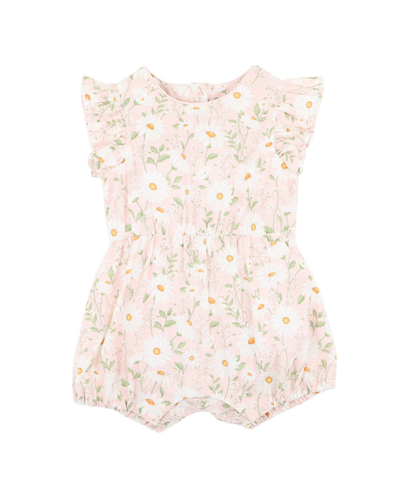 Perfect for sunshine-filled days, this soft floral romper is as charming as a spring garden. Featuring flutter sleeves, a gently elasticised waist and leg openings for comfort, and button detailing down the back, it's both beautiful and practical for little explorers. Whether it's a picnic in the park or a special outing, this daisy-print romper makes every day feel extra special.
