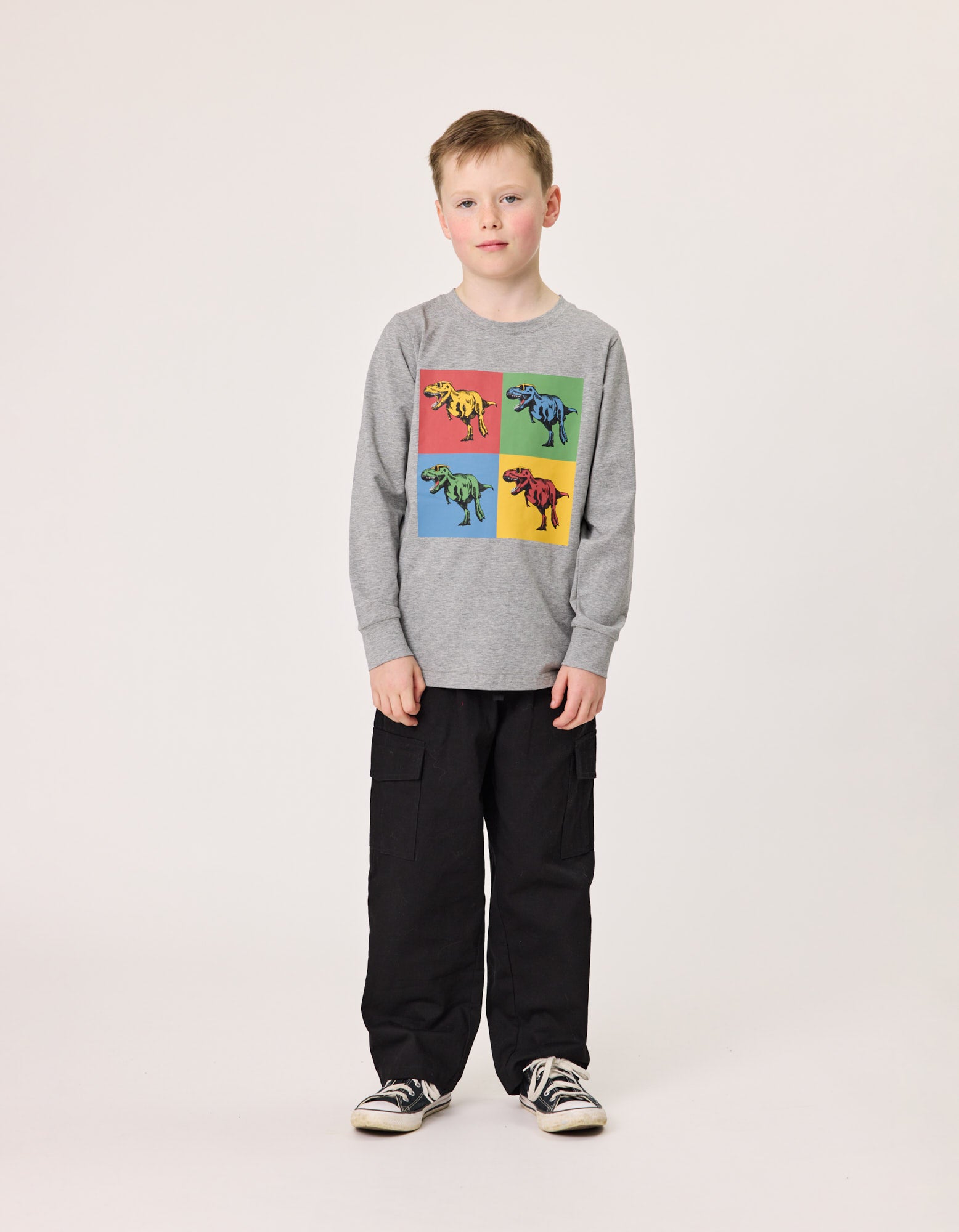 - Multi-coloured ‘T-Rex Art’ placement print on chest