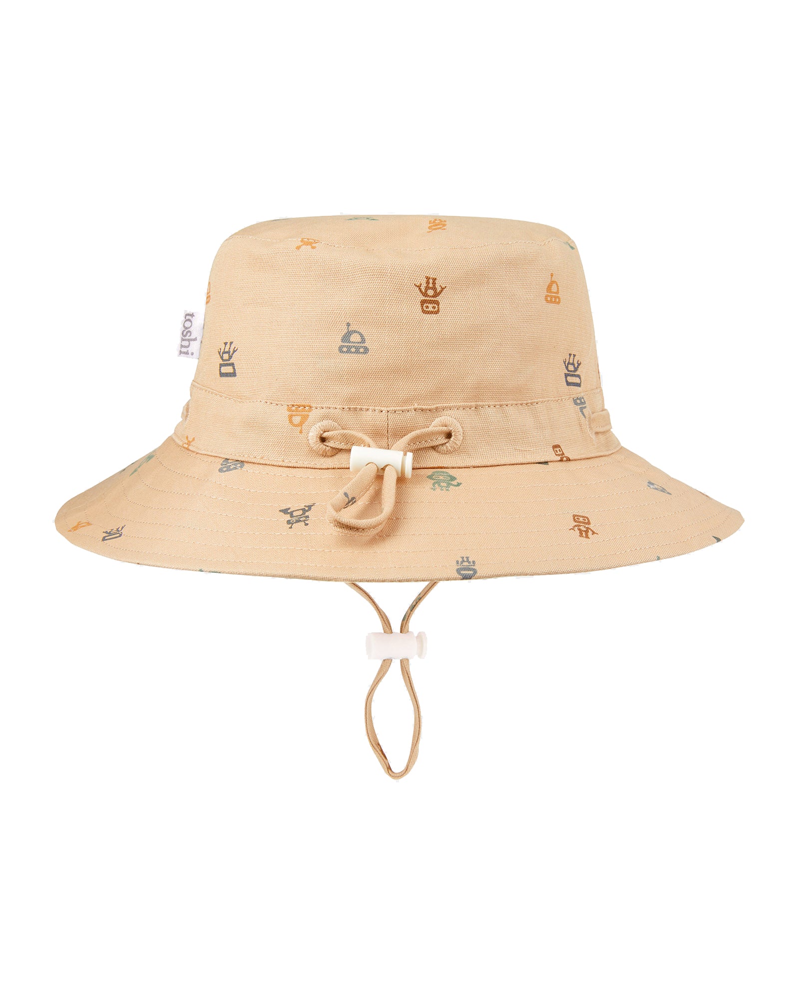 Toshi presents Sunhat Folk, a classic, gender-neutral sunhat for children of all ages. The sunhat has a broad and well-structured brim. The UPF 50+ UV rating indicates maximum sun protection. A head toggle creates adjustable sizing and the chin tie with toggle secures the hat and offers ease of wear. The security release clasp on the chin tie is designed to enhance wearer safety. The sunhat is fully lined for additional comfort. An original and exclusive Toshi print design is featured.