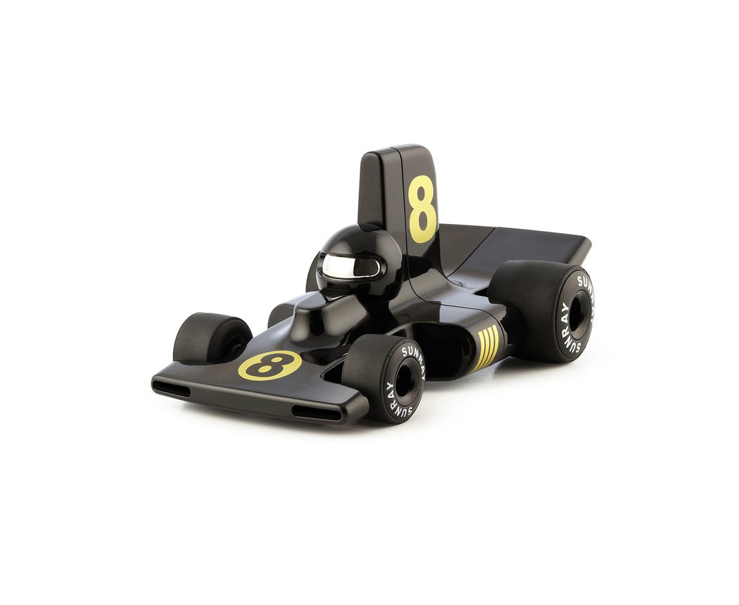 The Velocita collection by Playforever was inspired by the F1 scene of this era. Rubber tyres, stream-lined shapes and vibrant, shiny colours make this one of the coolest cars they have ever made! Its miniature size is perfect for kids, but it looks equally striking on the shelf or mantlepiece too. A real collector's piece.